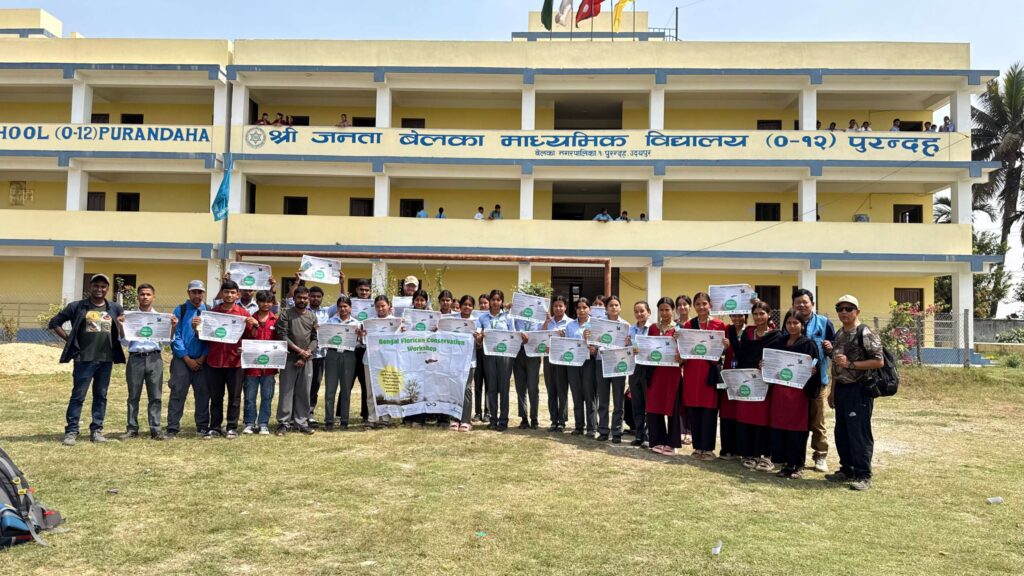 On 18th March, we conducted an awareness workshop on one of the most threatened grassland birds in South Asia, the Bengal Florican, in the Koshi landscape. The event was organized in Shree Janta Belka Secondary School in Purandah, where around 60 students from Grades 11 and 12 participated actively.